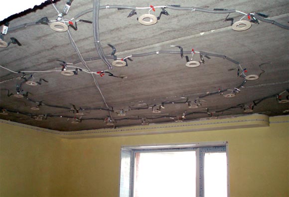 Как развести проводку под точечные светильники в капитальном перекрытии
